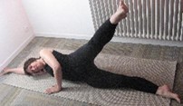 La jambe du dessus se soulève, et exerce des mouvements d’avant en arrière.