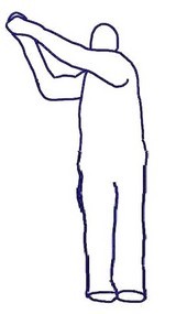 Tendez le bras droit parallèlement au sol, sur le côté. Le bras gauche le rejoint, dessinant ainsi un quart de cercle. Ensuite, le bras gauche dessine le cercle dans l’autre sens (passant au-dessus de la tête) et rejoint le bras droit par l’autre côté. De nouveau, les mains se touchent.