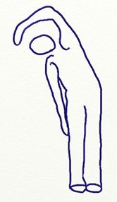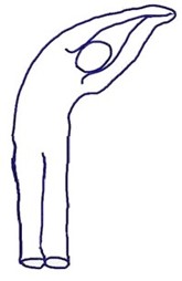 Penchez-vous sur un côté, levez le bras de façon à ce qu’il passe au-dessus de la tête, laissez-le « tomber » de l’autre côté. L’autre épaule descend lorsque vous vous penchez.