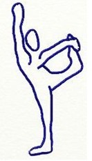 Expiration. Penchez le buste légèrement en avant et pliez en arrière la jambe opposée au bras levé. La main saisit le pied ou le mollet.